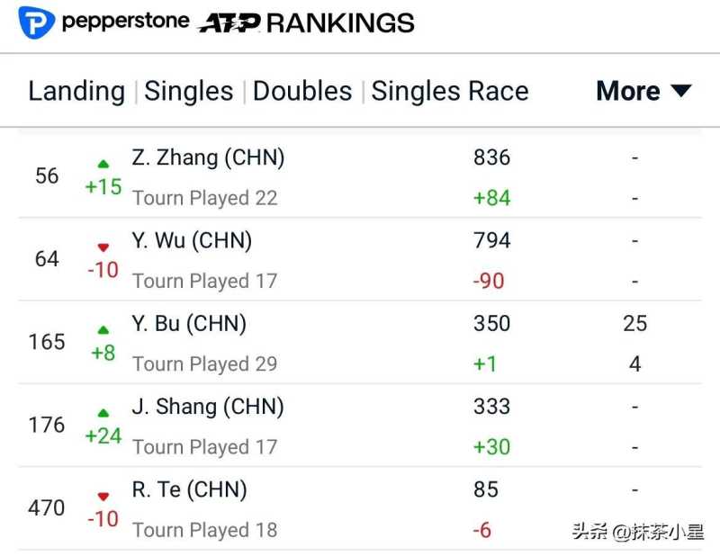 张之臻|NO.56(+15)|生涯新高吴易昺|NO.64(-10)|最高NO.54布云朝克特|NO.165(+8)|最高NO.164商竣程|NO.176(+24)|最高NO.165特日格乐|NO.470(-10)|最高NO.395