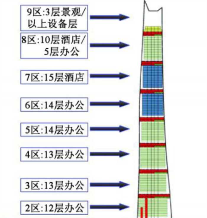 整个垂直空间的规划更是来源于中国人在生活中的缓冲室内,包括室外的一个朦胧空间,这种元素是上海独有的石库门建筑中最为常见的一种元素,包括上海长长的里弄还有庭院,是上海社交生活中的一个大背景,仅上海中心大厦的整个设计图就将这种里弄的布局更为直观垂直呈现给公众。