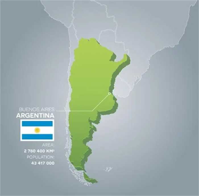 阿根廷位于南美洲东南部,是由23个省和联邦首都(布宜诺斯艾利斯)组成的总统制联邦共和制国家,其国土面积为2780400平方公里(不包括声称拥有主权的福克兰群岛、南乔治亚和南桑威奇群岛和在南极的领土要求969000 km²),是南美洲面积第二大国家,仅次于巴西,也是世界面积最大的十个国家之一。阿根廷西部为安第斯山区,约占全国面积的30%;东部和中部为潘帕斯草原约占全国面积的30%,这里是阿根廷重要的农牧业产区和全国主要的人口和城市分布区;南部是巴塔哥尼亚高原,约占全国面积的26%,这里受气候影响多为半干旱沙漠地区,也是阿根廷重要的石油和天然气产区;北部为查科平原,约占全国面积的14%,这里是阿根廷重要的棉花产区,石油、天气资源储量丰富。