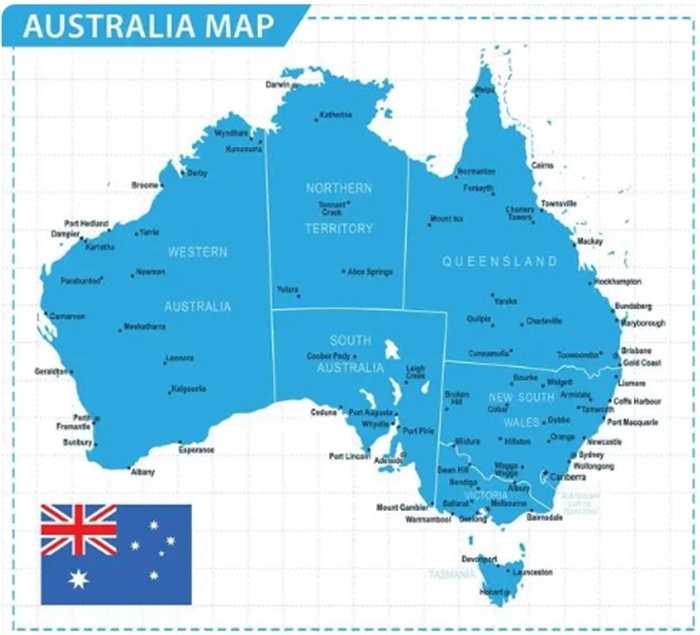 澳大利亚位于南太平洋和印度洋之间,四面环海,是世界上唯一国土覆盖一整个大陆的国家,因此也称“澳洲”,其国土面积为7688094平方公里,仅次于851万平方公里的巴西,也是世界上面积最大的10个国家之一。澳大利亚的地形特点主要是:东部山地,中部平原,西部高原,也可以说是两边高,中间低。全国约70%的国土属于干旱或半干旱地带,而中部则分布占比有20%的沙漠无人区,大部分人口都生活在东南沿海以及其他沿海的湿润地带。