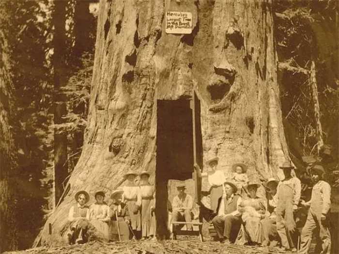 一位名叫霍斯金的富有的牧场主在内华达山脉南部购买了一颗巨型红杉树,并在巨树的树干上雕刻了一个房间,他将其命名为树屋。该房间建于1897年至1902年之间,直径3.6米,高2.7米。霍斯金还安装了一个铰链控制的木门,并尝试住在树立,但最后他发现树屋里面总有汁液从屋顶滴下来,组后他把它变成了一个礼品店,他把雕刻树屋时挖出的红木做成工艺品,在礼品店出售。如今树仍然站立着,房间仍然可以进入。