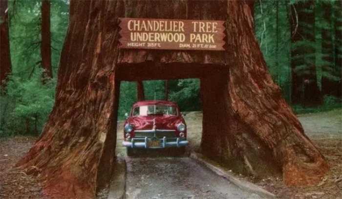 北加州的巨型红杉是世界上最大的树木,树干很粗,粗到可以在树干上挖一个洞,让小车通过。早期的公园推广人员认为这是一个好主意,不仅可以很好地宣传公园,还能向游客收取一定的过路费,开车通过大树并拍上几张照片,是大部分游客都会愿意的事情。
