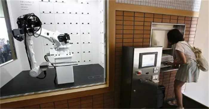 站在接待台后面的是三个机器人,一个是人形女孩,一个是看起来很危险的机器人恐龙,戴着帽子,身体弯曲,还有一个小型机器人。多语种机器人向客人解释入住和退房手续。机器人搬运工处理行李并将其直接送到客房,而在衣帽间,机器人手臂则为客人存放行李。