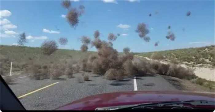 2.撞翻汽车:更令人震惊的是,风滚草有时会在发怒时表现出异常的破坏力。在极端天气条件下,风滚草可以沿地面滚动并积聚成坚硬的球状,这些球状的草块可以被风吹动,以高速滚动着撞击汽车,甚至足以将汽车撞翻。这种情况虽然不常见,但已经发生过多起事故。