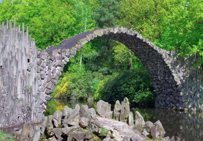 第四个是德国拉科茨桥,它又被人们称为魔鬼桥,相传建造这座桥的建筑师在修建桥梁的时候跟恶魔殿下的契约,如果想要成功建造桥梁的话就需要收取第一个过桥人的灵魂作为报酬,但是在桥梁建成之后,建筑师为了不让无辜的人牺牲性命就选择让一条狗走上这座桥,也有说是建筑师自己走上了桥梁的。不过这座桥最神奇的地方在于,桥梁和水中的倒影完美地形成了一个圆形。