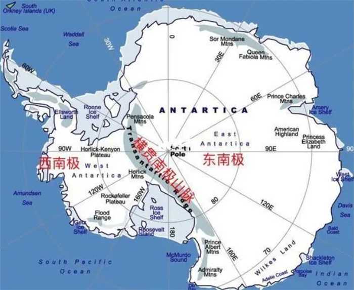 横贯南极山脉,从维多利亚地延伸到威德尔海,总长度达3500公里,是南极大陆的三个主要山脉之一。该山脉将南极洲分为东南极洲与西南极洲。平均海拔达4000米。