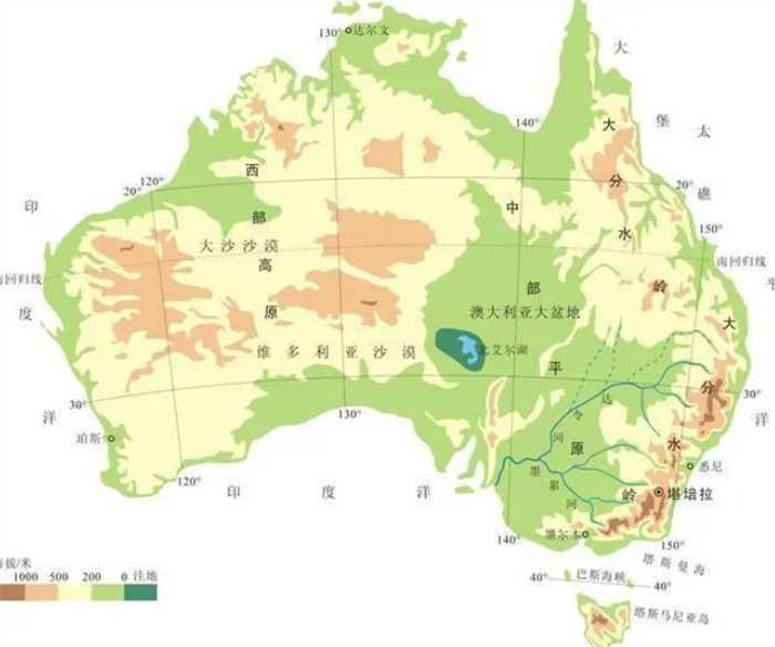 澳大利亚新南威尔七洲以北的山脉和高原统一被称为大分水岭山脉,整座山脉由北向南绵延约3000公里,平均海拔约为800至1000米,最高峰是位于新南威尔士州的科西阿斯科山,海拔为2228米,为澳大利亚大陆的最高峰,世界各大陆中最低峰。