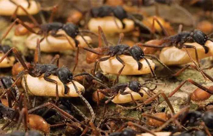 行军蚁是一种庞大的蚁群,不常筑巢,而是在进食过程中吞噬一切。它们拥有强大嘴巴和毒刺,能够攻击和吞食大型猎物。这种鳗蚁形成有序队列,进食一切昆虫,对生态环境具有极大破坏力。
