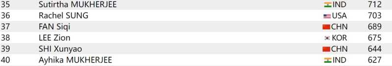 根据国际乒联最新一期女双世界排名,王艺迪、陈梦分别排在第1和第4,苏蒂尔塔-慕克吉、艾茜卡-慕克吉则分别排在第35和第40。
