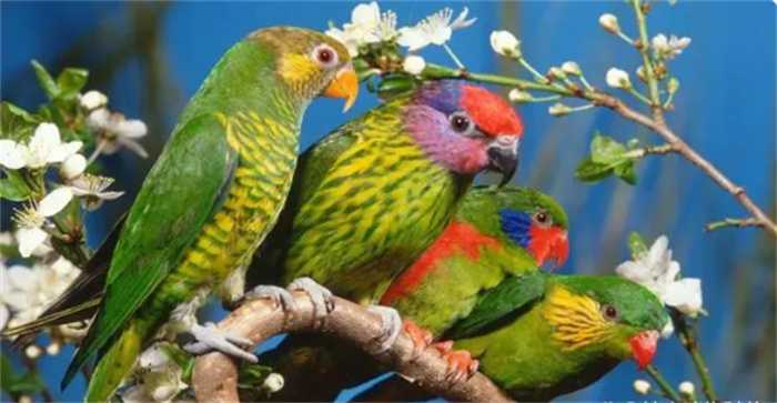 鹦鹉是色彩绚丽、喜欢发出叫声的鸟类,它们以植物性食物为主食。它们主要吃树上或地面上的植物果实、种子、坚果、浆果、嫩芽和嫩枝。吸蜜鹦鹉则主要以花粉、花蜜和多汁的果实为食。
