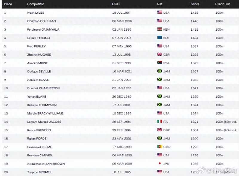 世界田联官网最新数据显示,男子百米世界排名中,已经没有了苏炳添的名字,目前排名最高的中国选手是谢震业,位列世界第27位。