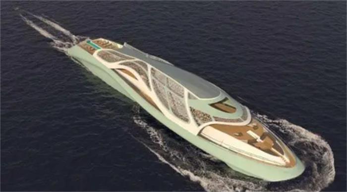 这款名为"甲壳"的混合动力船由意大利海军建筑师埃琳娜·纳皮设计,它可以在海面和水下航行。这艘游艇能够潜入300米的水下并连续航行10天,船上的人可以欣赏到惊人的海洋生物。