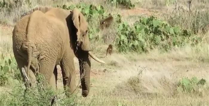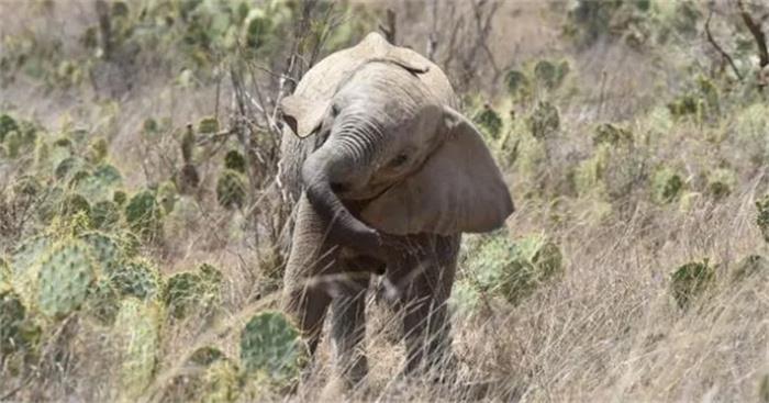 一头饥饿的大象正在肯尼亚莱基皮亚县的草原上游荡,直到他发现了一种甜而翠绿的零食:魔鬼仙人掌。