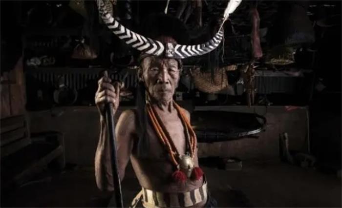 那加兰部落猎头老人们现在还喜欢穿着他们的传统服装,有的甚至把鹿角或象牙塞进耳朵,而少数人则穿着运动服或现代配饰。