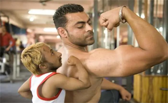 这个矮人教练是一个印度人,他的身高问题是由于天生的疾病而造成的,连医生也没有办法帮他恢复身高,矮人教练的身高80cm,体重只有20斤,看上去就像是一个三四岁的小男孩儿一样。虽然他有着这么劣势的先天条件,不过他在长大之后却希望能够让自己通过健身来变成一个真正的男人。