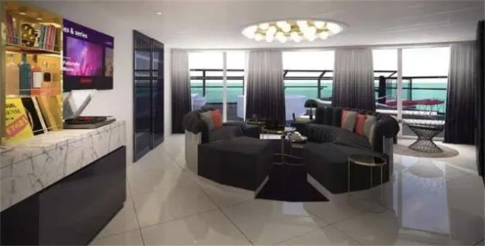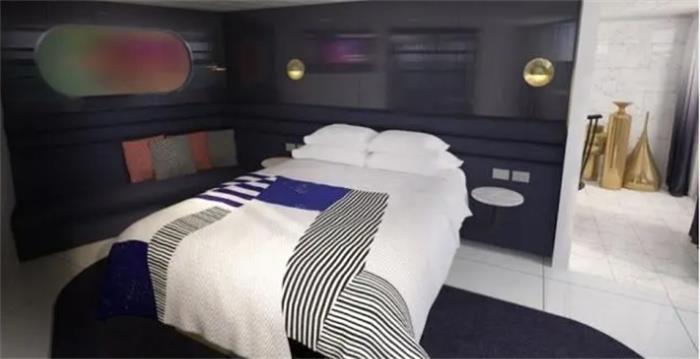 理查德·布兰森的游轮公司,刚刚发布了该船78套豪华“超级摇滚明星套房”的效果图,这些套房将位于该船的第15层甲板上。