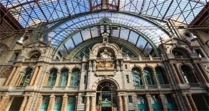 安特卫普中央车站被媒体誉为世界上最美丽的火车站之一,建于1895-1905年之间。设计师Louis Delacenserie使用了20多种不同的大理石建筑材料,令人印象深刻的是多层次的玻璃和钢铁的拱形天花板。整个建筑看起来像是二战时期的V-2炸弹,吸引着来到这里的人们。