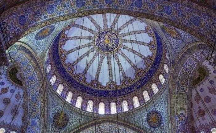 伊斯坦布尔的苏丹艾哈迈德清真寺绰号“蓝色清真寺”,因其醒目的蓝色内饰而出名。