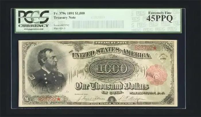你可能会认为一张1000美元的纸币的售价应该和面值一样,即1000美元,但你错了,一张特殊的1000美元纸币在巴尔的摩的一次拍卖会上以令人惊叹的204万美元的价格售出。这张纸币可以追溯到19世纪,被称为纸币圣杯,因纸币背面印有三个巨型绿色条纹状的零而被称作"大西瓜"。钞票的正面是1863年赢得美国南北战争决定性战役葛底斯堡战役的乔治·戈登·米德少将的肖像。这张存世钞票仅有七枚,目前私人手中总共收藏有三枚这样的钞票,而这枚被拍卖的“大西瓜”美钞票保存品相最为完好。