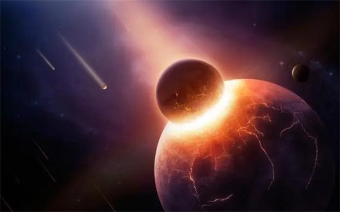 有些科学家们相信,在太阳系曾经有一颗行星叫做“忒伊亚”(Theia),它的大小和火星差不多,曾以60度角从地球前面或后面擦肩而过。大约45亿年前,“忒伊亚”突然撞击地球。它的大部分物质都被撞击到宇宙空间,若干年后形成了月球,为什么科学家会提出这样的观点?这是因为对于一个像地球这么大的行星来说,它的卫星月亮显得非常的大,而且月亮的金属同位素也和地球一样。