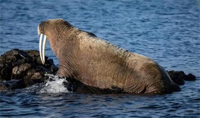 海象是食肉目海象科哺乳动物,头部扁平,吻端较钝。前肢较长,五指分得很开;雄性白色上犬齿终生都在不停地生长;雄兽体长3.3~4.5米,体重1200~3000千克。在海水中靠着流线型的身体、发达的肌肉以及强有力的鳍状肢,则行动自如,非常机敏,用后肢推进,前肢转弯,时速达24公里,海象由于身体个头很大,而且极具攻击性,就连北极熊都不会招惹成年海象。