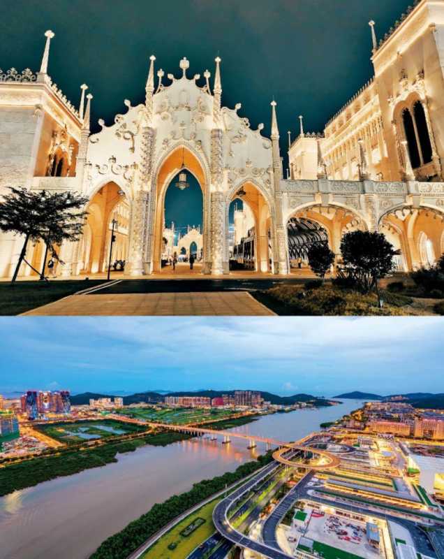 上图:航拍珠海湾仔、横琴和澳门。 中图:励骏庞都广场。 下图:莲花大桥。本版图/视觉中国 IC