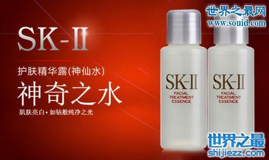 镇牌之宝:护肤精华露(又称神仙水)——“神仙”二字吸引了无数女性为之动容,拥有含有高达90%以上的富含多种营养成分的Pitera酵母精华,每天为肌肤提供充足营养并调理肌肤,深层保湿,平衡肌肤的pH值,塑造润泽光洁的肌肤本色,SK-II不仅神仙水位居护肤品排行榜前十名,堪称最神奇的“水”,SK-II唯白晶焕祛斑精华液,在美白产品排行榜10强也是名列前茅。