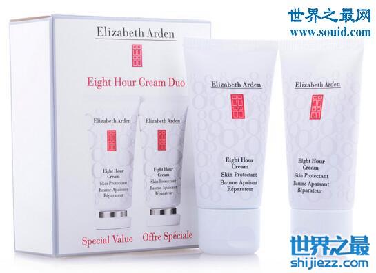 镇牌之宝:8小时润泽霜——该品牌历史最悠久的产品之一,至今已有74年的历史,有"万能霜"之称。可用于脸部、眼部、唇、颈和手,任何一处你觉得干燥的地方。滋润度非常持久而有效,它另外还有淡化疤痕、修复肌肤弹性的意外疗效。
