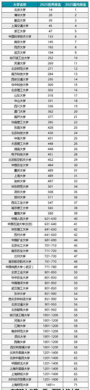 北京大学稳居第14位,清华大学紧随第17,复旦大学、上海交通大学和浙江大学也杀入前50。