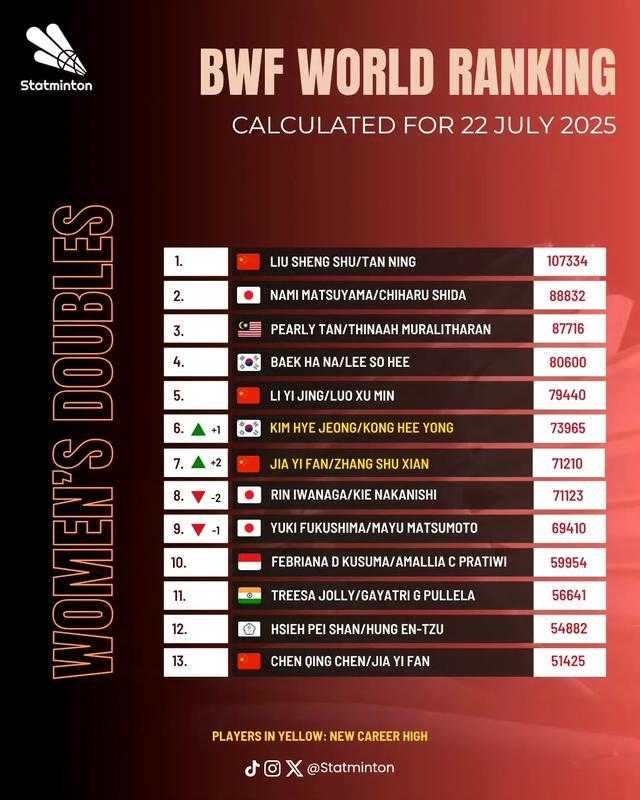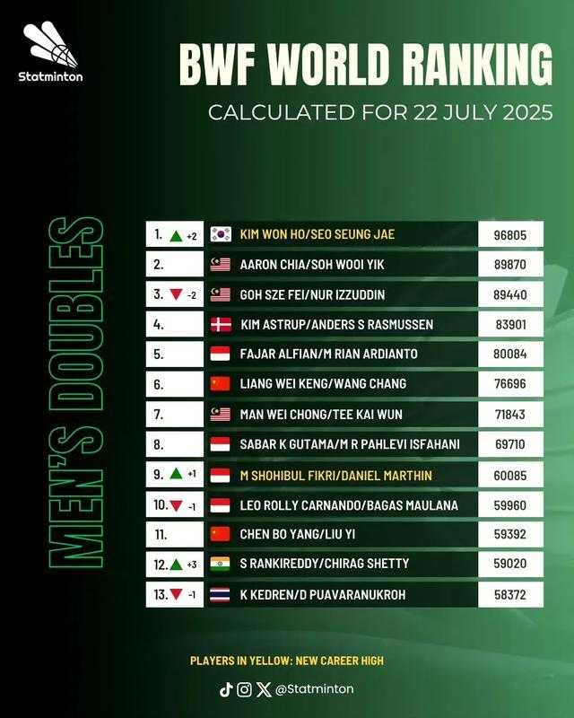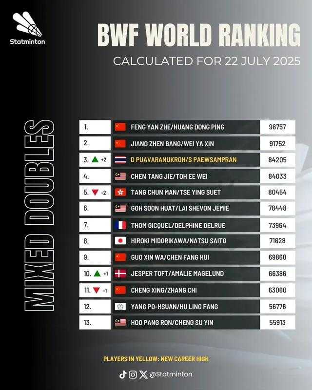 最新世界排名,石宇奇升第二,凤凰、欣邦世锦赛要争取上下半区