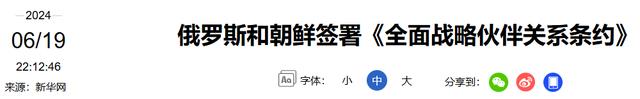 2.《俄罗斯和朝鲜签署<全面战略伙伴关系条约>》2024-06-19 22:12 | 来源:新华网