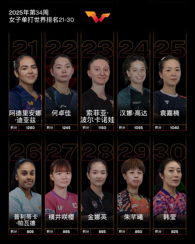 3-0,横扫日本早田希娜,最新世界排名:孙颖莎、王曼昱第一第二 北京时间11月26日消息,2025年WTT球星挑战赛马斯喀特站落下帷幕后,国际乒联2025年第48周世界排名也火热出炉。女子单打方面,中国女乒包揽前五,“小魔王”孙颖莎、“鳗鱼”王曼昱继续高居世界第一、世界第二。国际 ... 世界排行11-28
