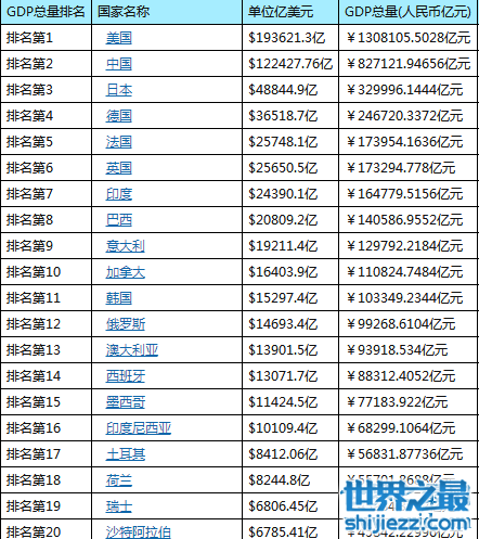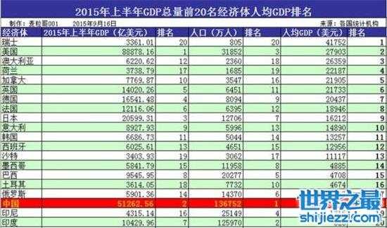 世界人均GDP排名 中国即将超越美国成为GDP第一大国
