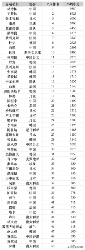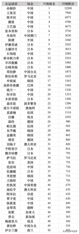 8月26日,国际乒联公布了2025年第35周世界排名。