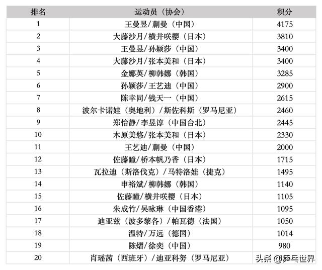 - 最新世界排名,早田希娜重返世界前10,松岛辉空升至第8,邱党第9