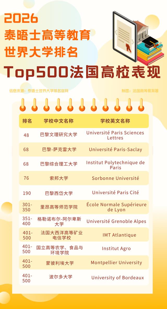在2025年的榜单中,法国共有48所院校上榜,其中11所成功跻身全球前500强,彰显了其在全球教育领域的强劲实力与领先地位。