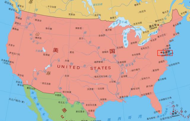 第4大国、美国,首都华盛顿,全称叫华盛顿哥伦比亚特区,位于美国东海岸偏北地区,离美国西部非常远。华盛顿在美国的地理位置,比北京在中国更偏东,但没有北京偏北。