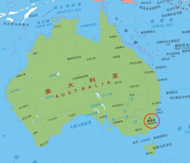 第6大国、澳大利亚,首都堪培拉,位于东南部山区的一块谷地,又一个首都位置偏居一角的国家,偏离程度类似加拿大。堪培拉离澳大利亚内陆地区、北部地区很远,离西海岸更是极为遥远。
