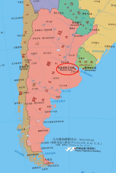 第8大国、阿根廷,首都叫布宜诺斯艾利斯,位于拉普拉塔河河口,海岸线看相对不太偏,但在全国的位置偏东,与内陆哪里都远。