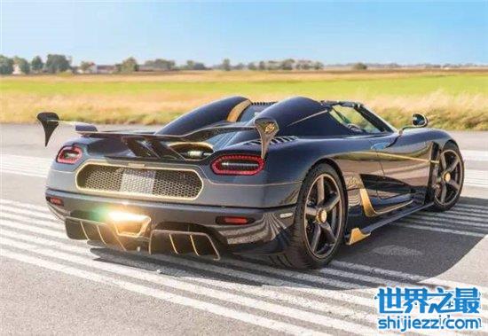 这辆柯尼塞格跑车可以说是世界上唯一一辆最大马力和车重相同的跑车,这辆车最大马力1360hp,车身重量1360kg,因此得名one:1。柯尼塞克one:1搭载了5.1L双涡轮增压发动机,需要使用生物汽油才能达到最大马力,这辆车的极速为440km/h。而且百公里加速在这辆车上已经过时,柯尼塞克one:1的400公里加速用时将低于20s。可以说是世界上最贵的跑车了。