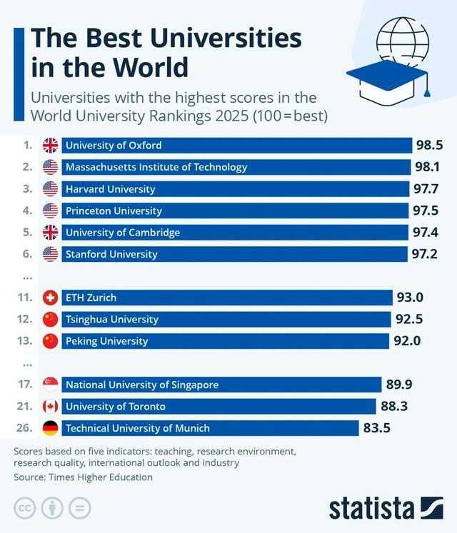 填志愿时看QS,申请留学时看Times Higher Education,连社交媒体上的留学分享帖,都离不开「前100」「前50」这些数字。