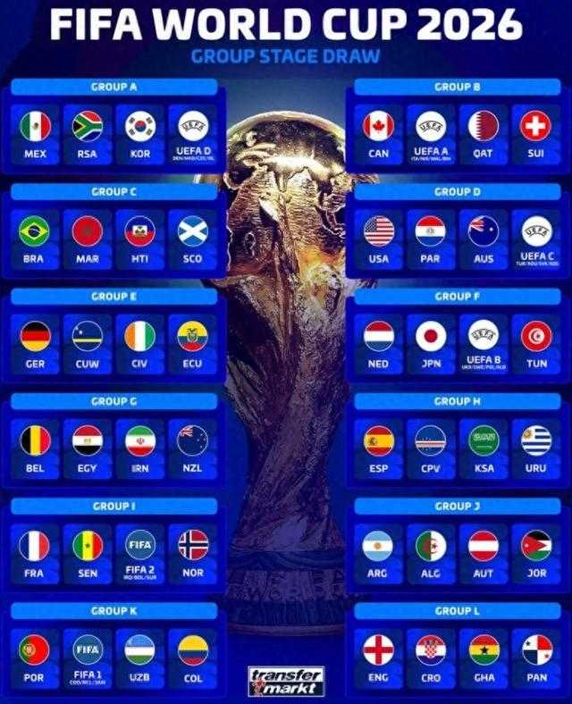 直播吧12月6日讯 世界杯抽签已经出炉,《转会市场》也统计了当前各组的世界排名,I组和L组内各有3队排名均在世界前30。