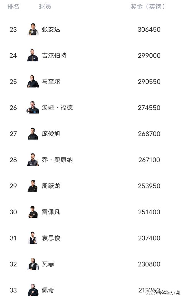 斯诺克最新世界排名:塞尔比夺冠升第六,Top16中国五席,小丁下跌