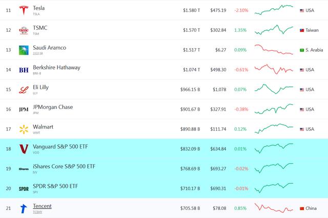 全球资产排名里,腾讯排名第21名。