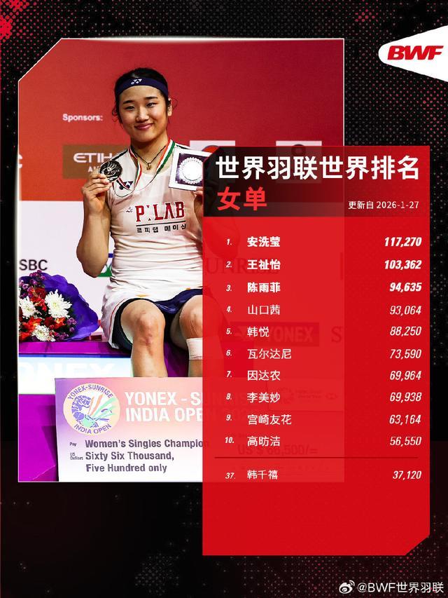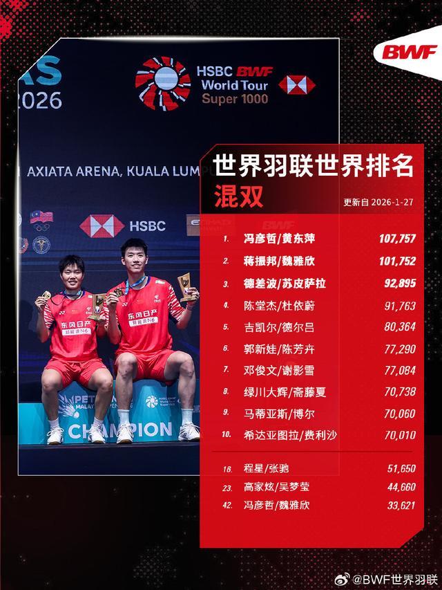 【世界羽联2026年第5周世界排名】