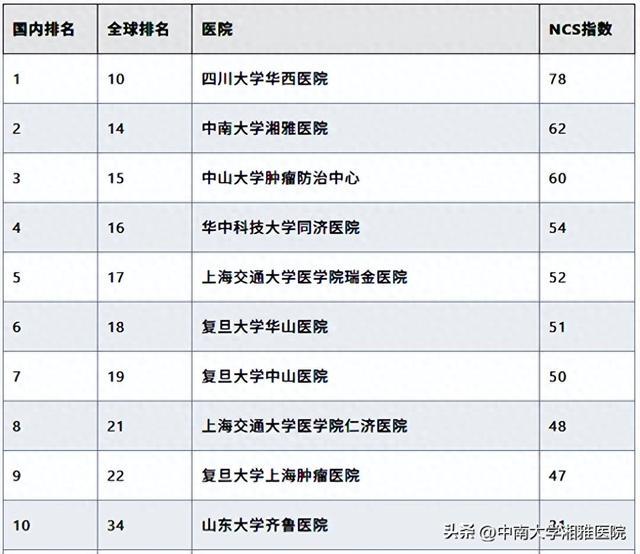 全球医院CNS顶刊排行榜发布,湘雅医院位列中国第2位、全球第14位