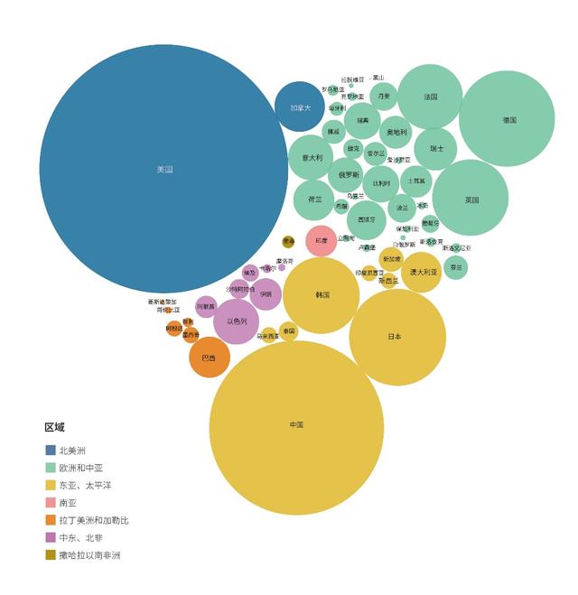 欧洲地区整体表现强劲。瑞士、德国、法国等26个国家人口合计占全球的9.3%,GDP占全球的23.8%,其R&D经费投入总量占全球的21.6%。