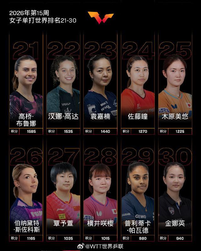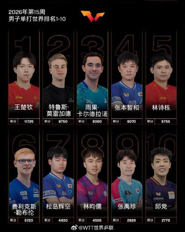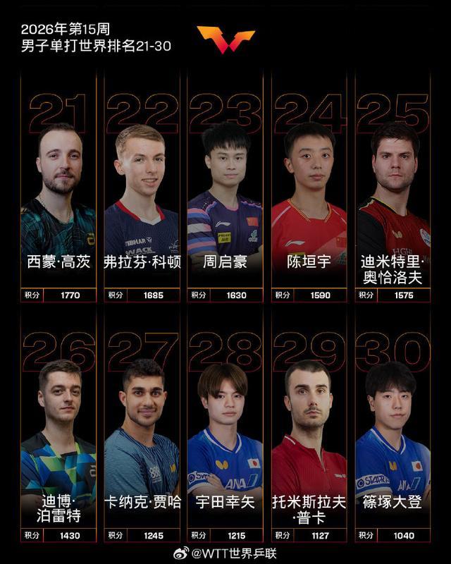 【国际乒联2026年第15周世界排名】