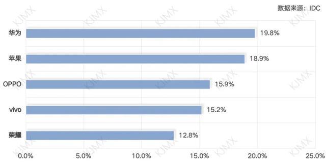 具体的品牌表现方面,苹果市场份额由去年同期的19%升至21%,领跑全球市场。