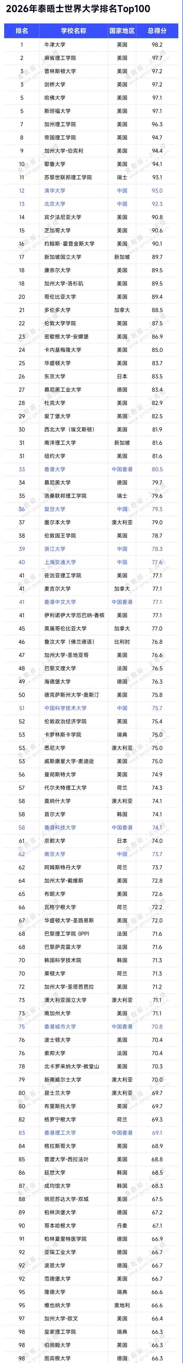 本次排名覆盖全世界多个国家和地区的近千所高校,评估维度涵盖教学质量、科研实力、学术影响力等多个核心方面,参考性极强。清华、北大凭借多年的科研积淀、顶尖师资力量和人才培养成果,稳居亚洲顶尖位置,也是我国高等教育实力的直观体现。